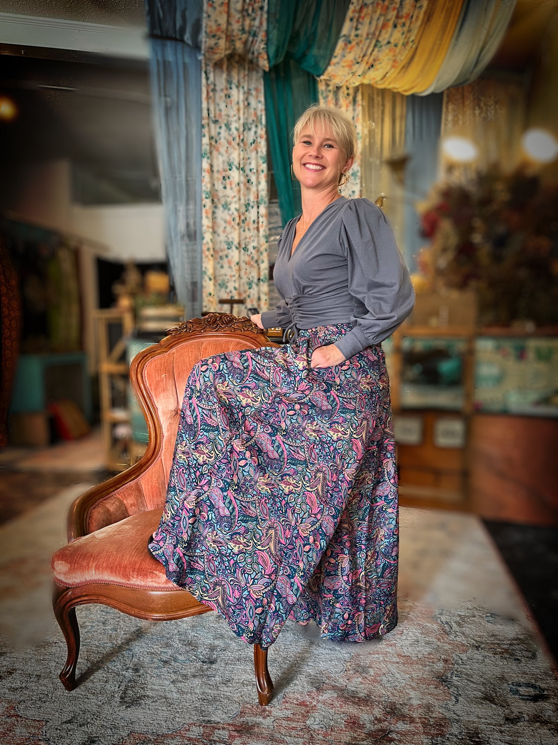 These Palazzo’s are designed to fit pant sizes 2-16, providing a flattering fit for a range of body types. The waist width stretches up to 45", offering flexibility and comfort. With a leg length of 40" and the bottom of the leg stretched to 90", these pants exude a sense of effortless chic.